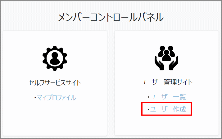 「メンバーコントロールパネル」の ユーザー管理サイト にある【ユーザー作成】をクリックします。 |