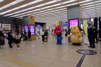 当日はカスタム君とミャクミャク(大阪・関西万博公式キャラクター)も参加し、若者、親子連れほか多くの方々へ向けて、周知・啓発活動を実施することができました。