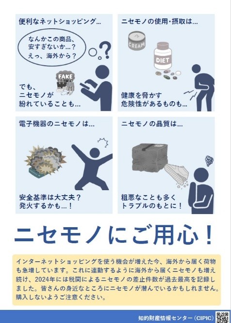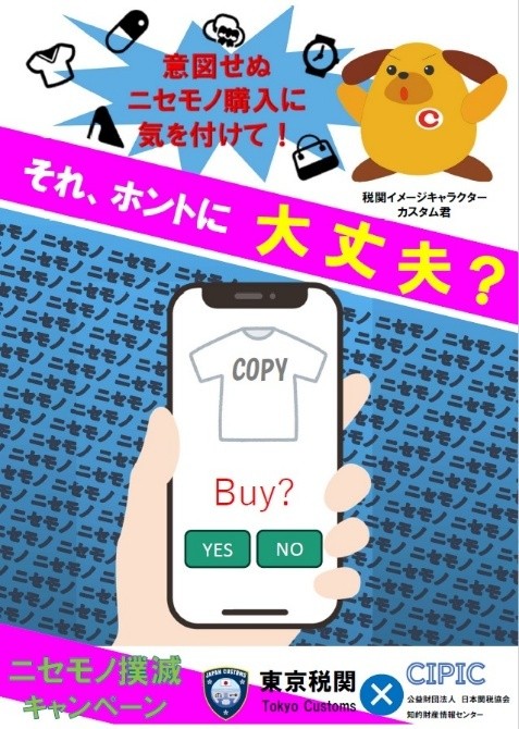 これは、昨今の越境電子商取引の拡大により、インターネットを通じて、消費者の皆様がニセモノとは知らずに購入してしまう被害が増えており、税関と権利者が協力して水際での取締りを強化する一方で、ニセモノの購入自体を減らす努力が必要との認識から実施されたもので、東京税関とCIPIC会員が連携した初めてのキャンペーンになりました。