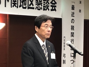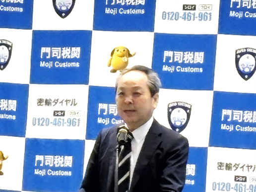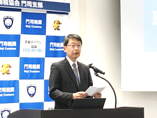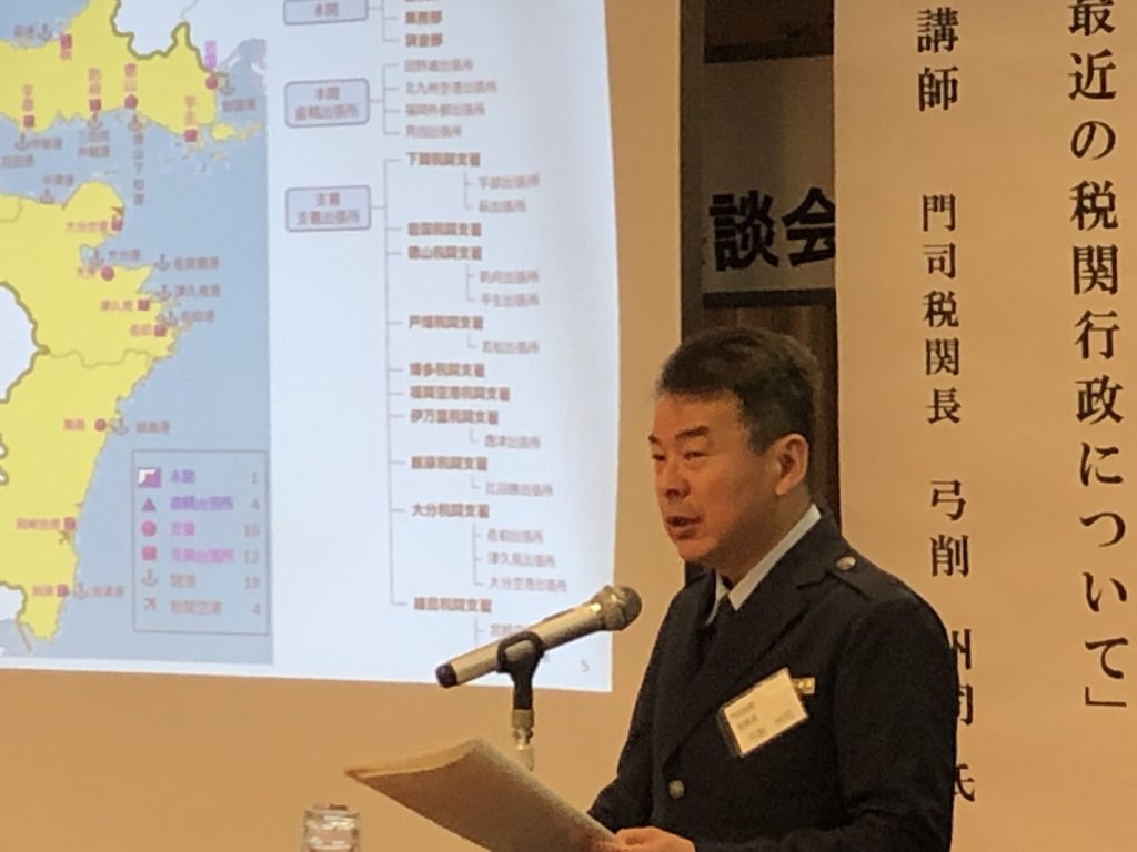 最後に門司税関長 弓削 州司 氏から「最近の税関行政について」と題して、不正薬物の密輸摘発状況や少額貨物の急増への税関の対応など最近のトピックを含む講演が行われ、出席者は興味深く聞き入っていました。