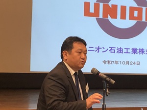 引き続き、地区会員からの業務紹介として、ユニオン石油工業株式会社 取締役工場長 嶋田 勝彦 氏から「ユニオン石油工業株式会社事業紹介」と題して潤滑油の精製など業務についての紹介があり、原油の産地によって潤滑油分が多い油とそうでない油があるなど興味深い内容でした。