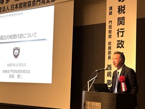 | 西嶋 門司税関総務部長 講演 | 講演会風景 | |