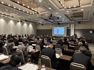 その後、門司税関総務部長 西嶋 要二 氏による「最近の税関行政について」と題した講演会では、コロナ禍後の貿易額や入国旅客の増加状況、不正薬物や知的財産侵害物品差し止めの増加状況、少額貨物の輸入急増など税関を取り巻く最近の状況に関する説明があり、100名超の出席者は熱心に聞き入っていました。