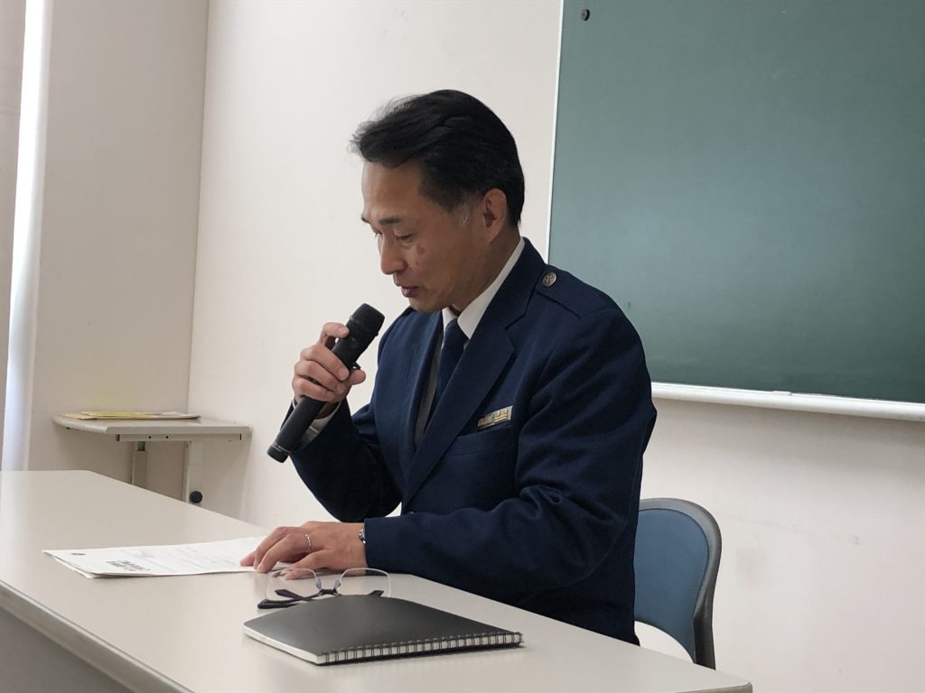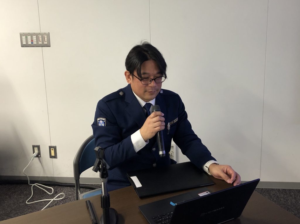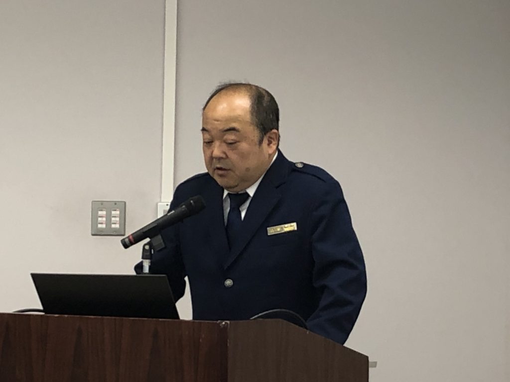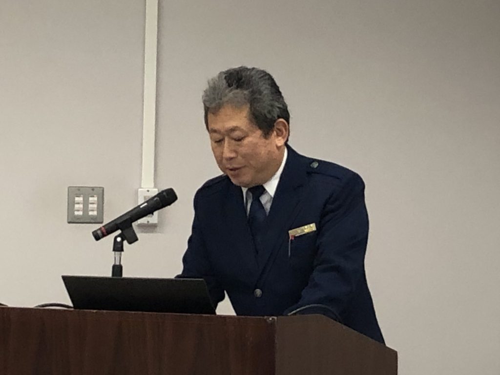 その後、第一部のMOU連絡会では、同支署の井本上席監視官からMOU連絡会の趣旨、経緯の説明、並びに直近の密輸動向と摘発実績及び税関からの依頼事項が説明されました。