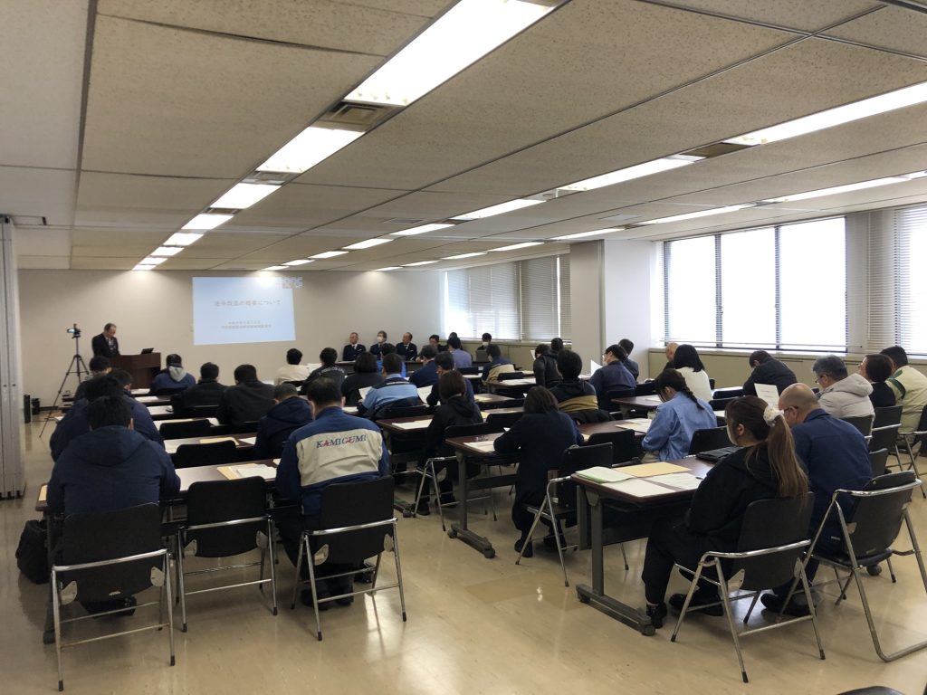研修では、①自主管理と社内管理規定(CP)、②保税地域における非違状況等、③非違に係る処分規定と処分点数の算出事例、④適正な貨物管理のための方法などについて説明が行われました。