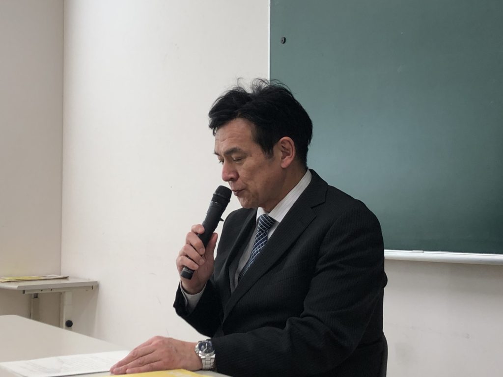 門司支部参与 日本通運㈱大分支店長 室園 和寿 氏の主催者挨拶に続いて、大分税関支署長 杉本 充治 氏から昨年の大分県内の貿易動向、大分空港での台北便の新規就航及び別府港への外国航路のクルーズ船の入港が前年を18隻上回る40隻となり今後もインバウンド旅客の増加が見込まれる中、税関としては地域経済の更なる発展ために訪日旅客や海上貨物の流れを阻害しないよう迅速な業務処理に努めているとの紹介を含めた来賓挨拶の後、門司支部から活動状況の報告を行いました。