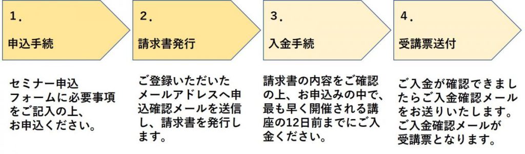 - 一度お振り込みいただいた受講料のご返金には応じられませんので、予めご了承ください。