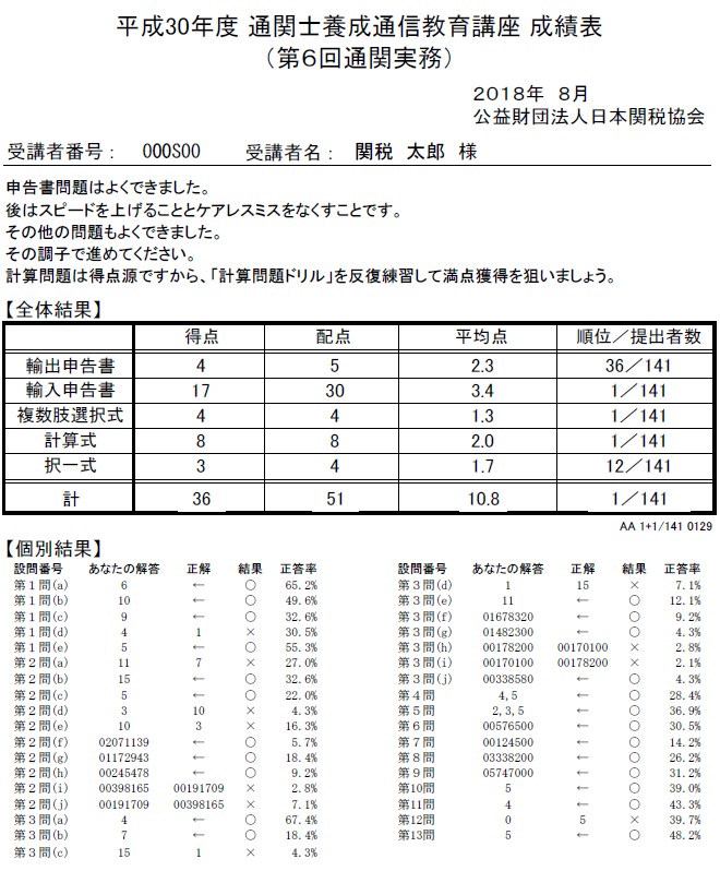 本講座では、6カ月の期間中に計7回の課題に取り組みます。課題は、通関士試験を熟知した講師陣が出題者の視点に立って、前年の試験直後から作成しています。毎回各自に成績表とアドバイスが送付されますので、自分の実力を把握しながら学習に取り組むことができます。